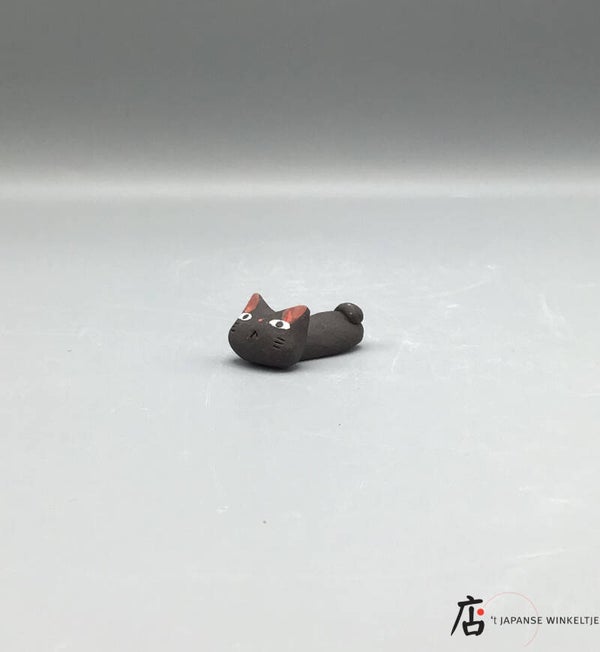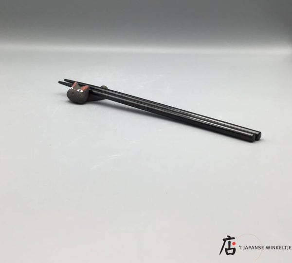 Eetstokjeslegger in de vorm van een kat. De meeste hashioki uit ons assortiment hebben een gladde buitenkant, deze is echter grof.