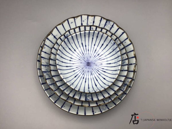 Schaaltje in bloemvorm met fijne streepjes. Onderdeel van een serie.