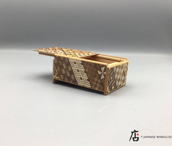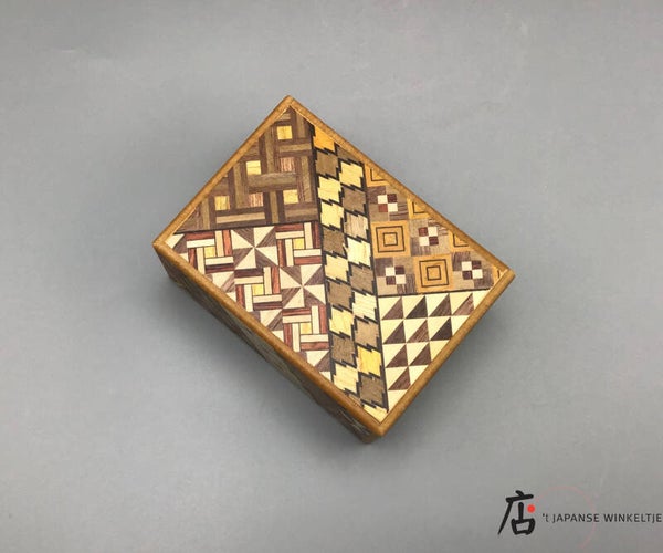 Doosje van hout in 4 stappen te openen. Deze puzzeldozen kwamen in beeld in de Hakone regio van Japan, eind 19e en begin 20e eeuw.