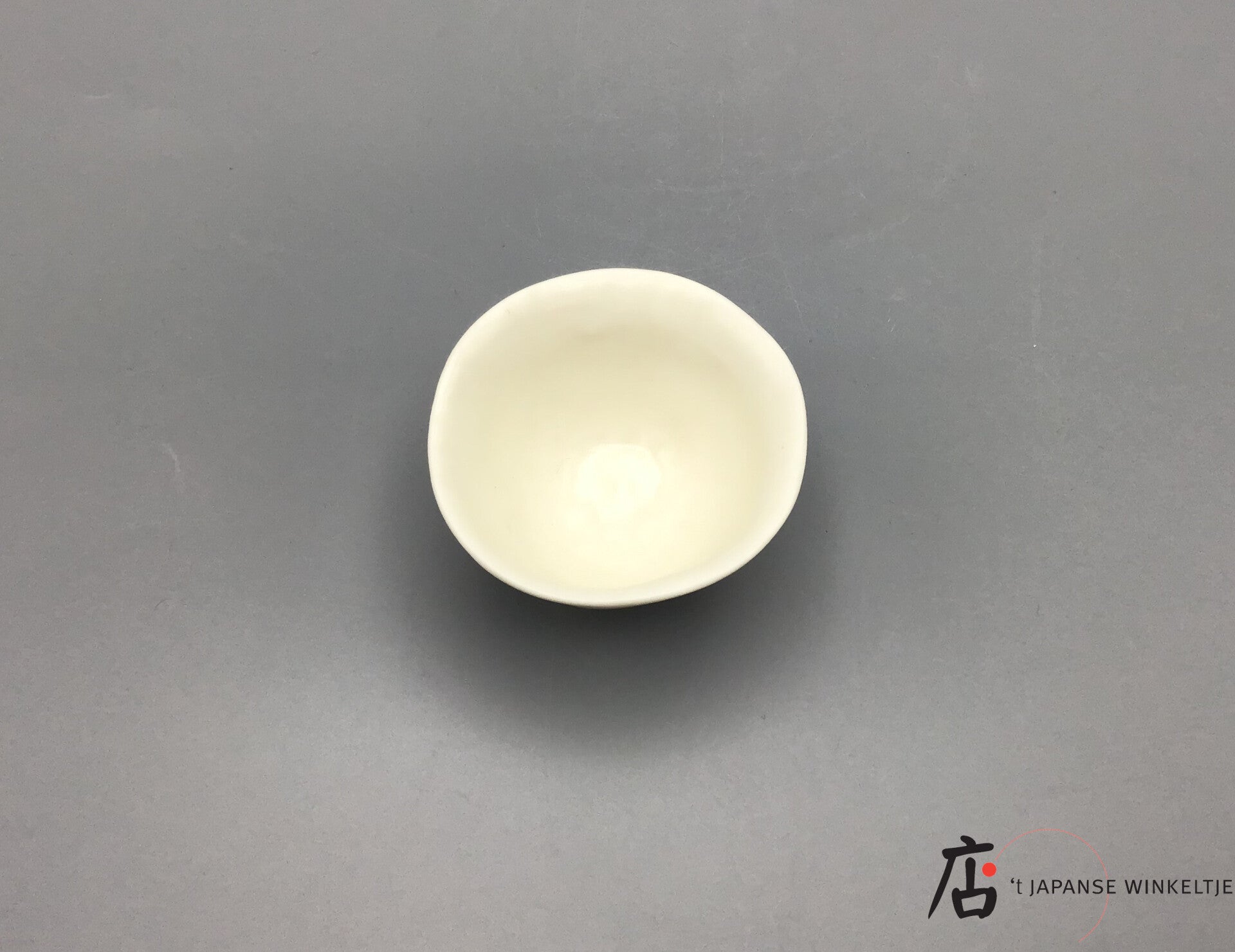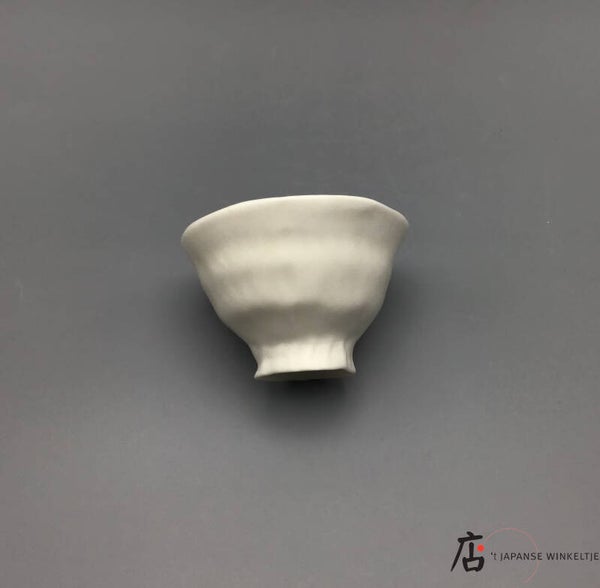 Witte keramieke theekop, handgemaakt door pottenbakster Haruka Matsuo.