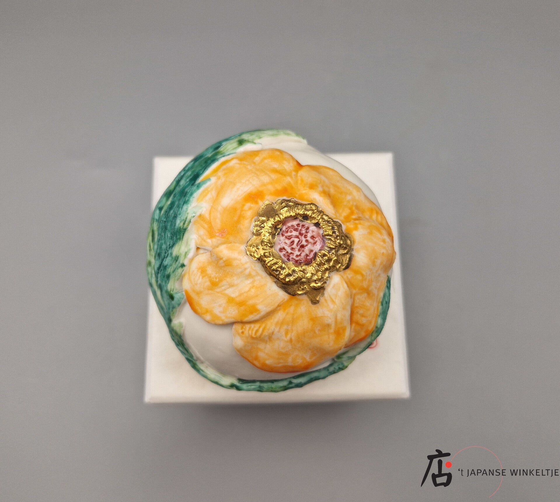 Wierookhouder handgemaakt door Haruka Matsuo, bestaande uit 3 onderdelen welke los zitten. Inclusief doos en Sansho wierook.