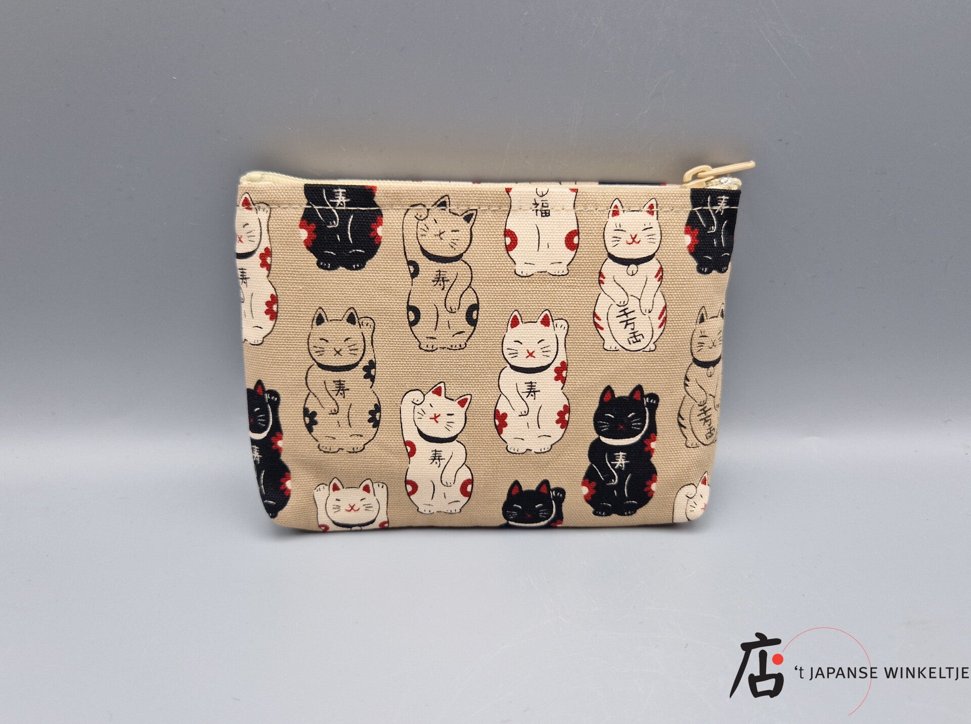 Pasjeshouder met ritssluiting en twee vakjes aan de voorzijde, met kattenpatroon. In 3 kleuren verkrijgbaar.