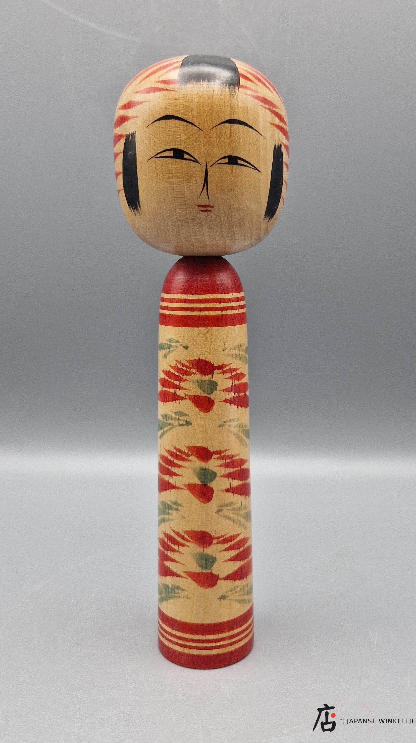 Doordat al onze kokeshi vintage zijn is het helaas niet mogelijk voor ons om achter details (zoals de maker, houtsoort, periode en regio) te komen.