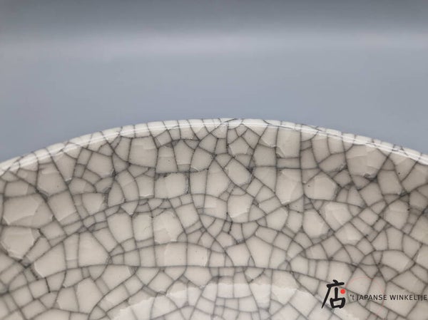 Wit grijs schaaltje met craquelé. Bij een Japanse maaltijd is deze schaal zowel geschikt om uit te eten als om gerechtjes in te serveren.