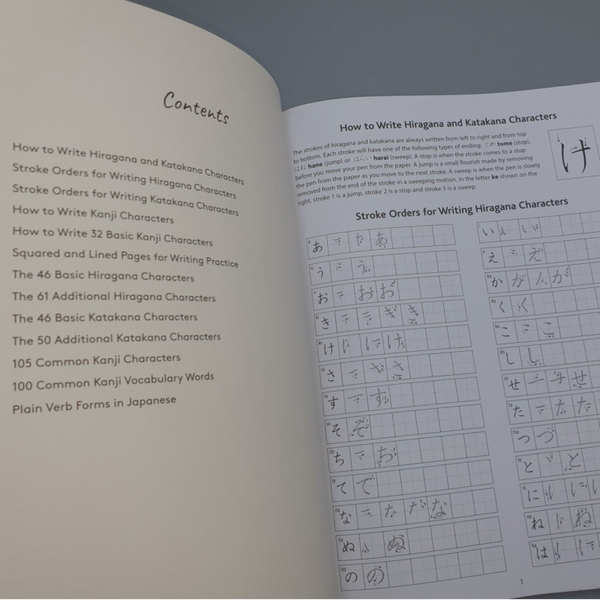 Boek voor het beoefenen van het Japanse schrift.Leer Hiragana, Katakana en 32 basis Kanji schrijven.