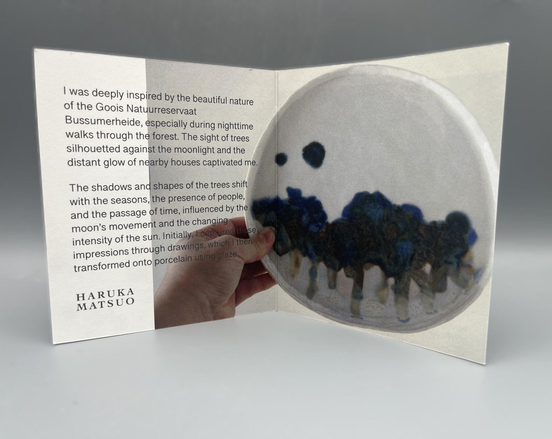 De schalen maken deel uit van een serie die geïnspireerd is op de prachtige natuur van het Goois Natuurreservaat Bussumerheide. De inspiratie kwam vooral tijdens nachtelijke wandelingen door het bos.
