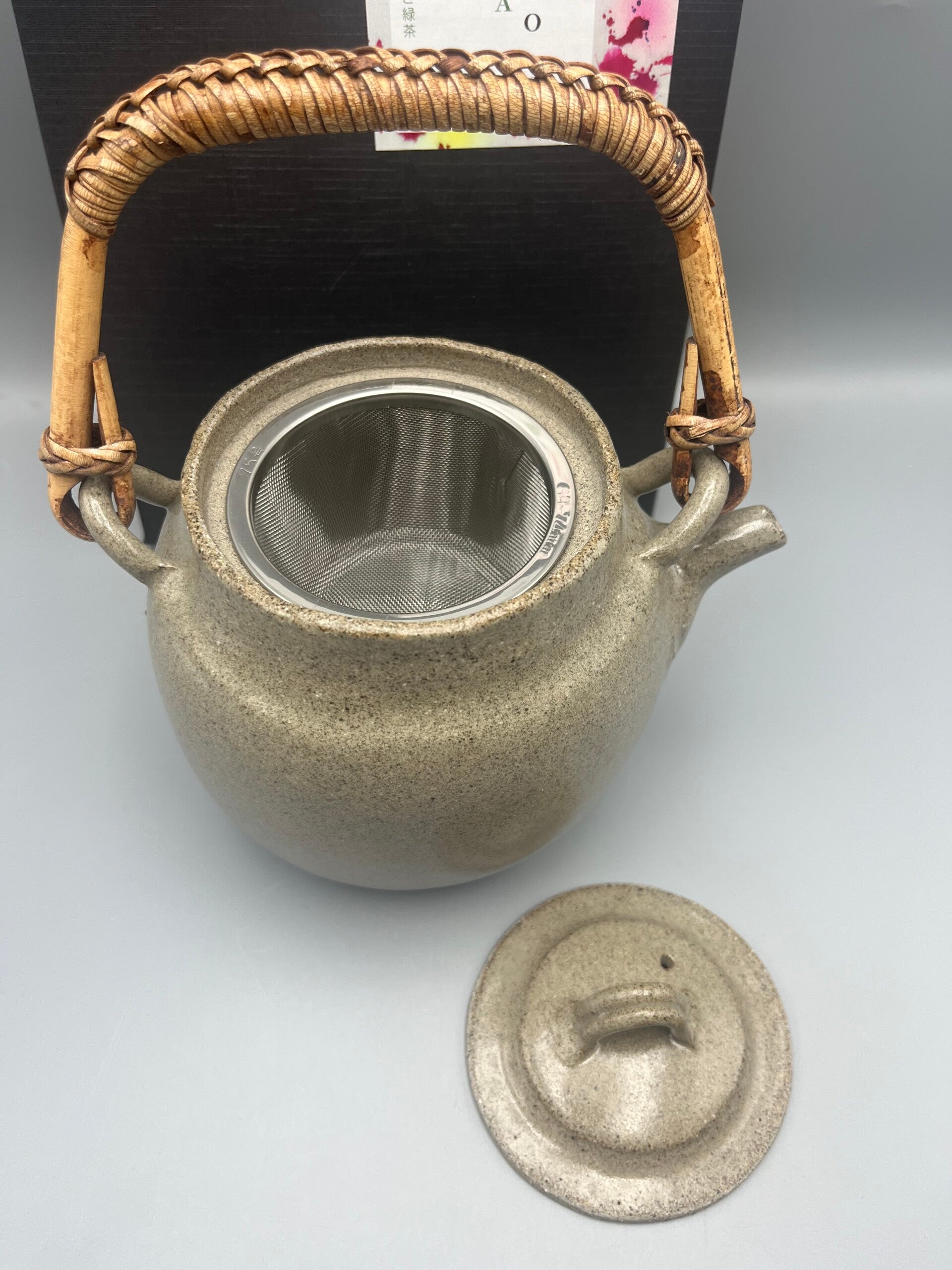 Materiaal: Het lichaam is keramisch en het handvat is van bamboe