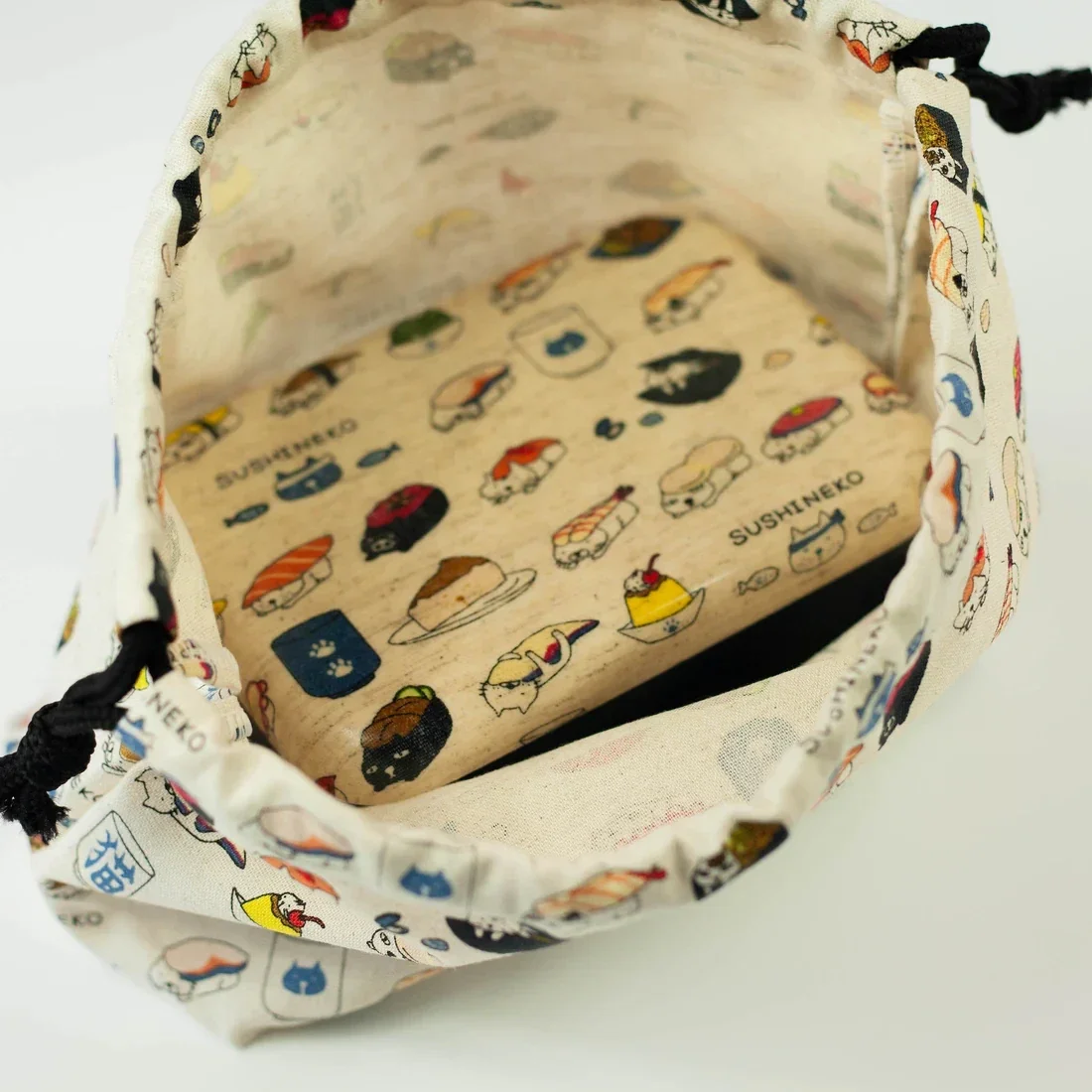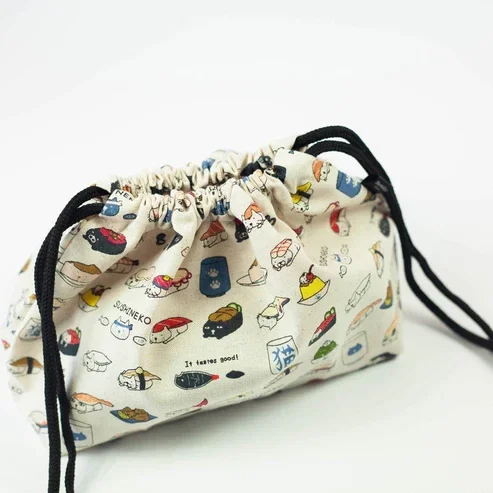 Deze schattige beige tas is bedrukt met een patroon van sushi-katten. Ideaal om je bento box gemakkelijk mee te nemen, maar ook handig voor andere spulletjes.