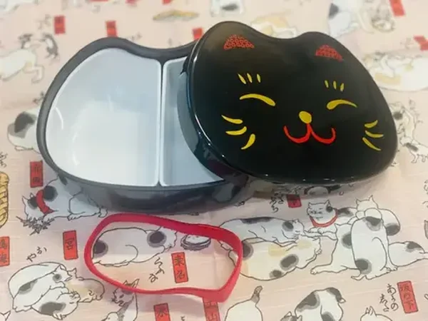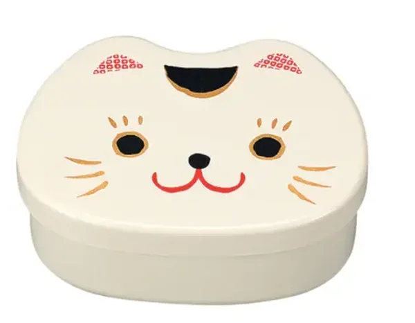 Bento-box (lunchdoos) die heeft kattenkpopvorm. Verkrijgbaar in wit en zwart, met twee kleine binnenbakjes voor compartmentering.