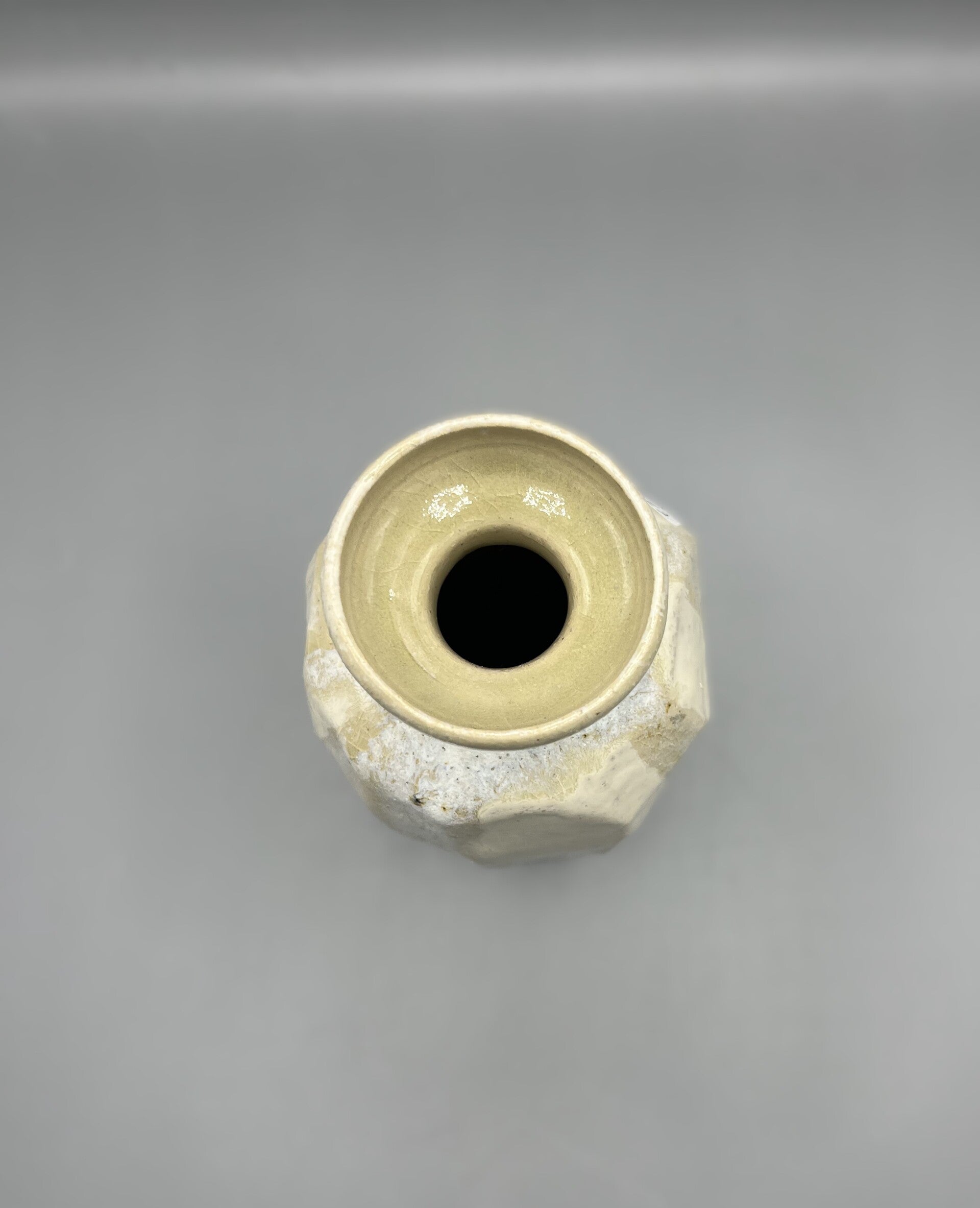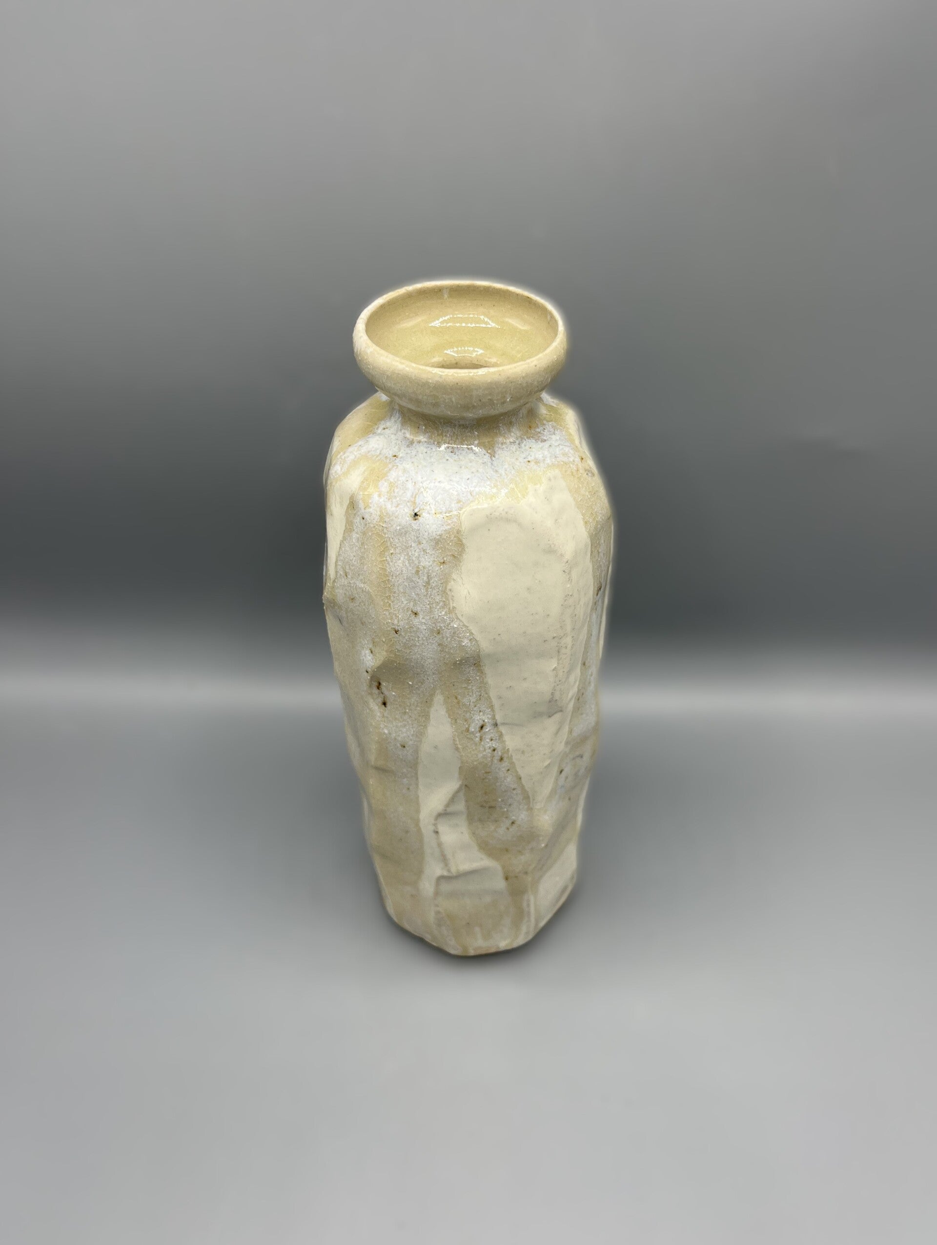 Gestructureerde vaas in gebroken wit en beige, handgemaakt door Anne Sey.