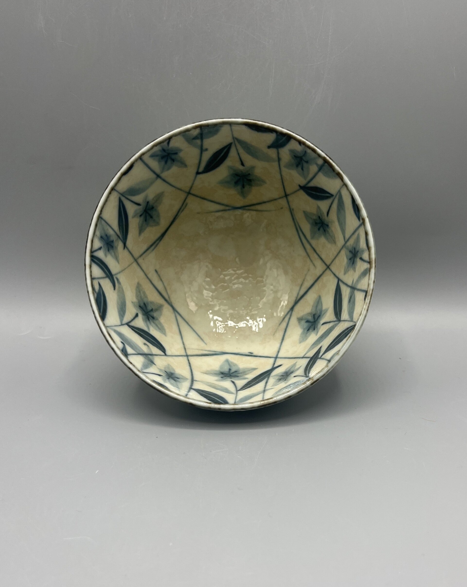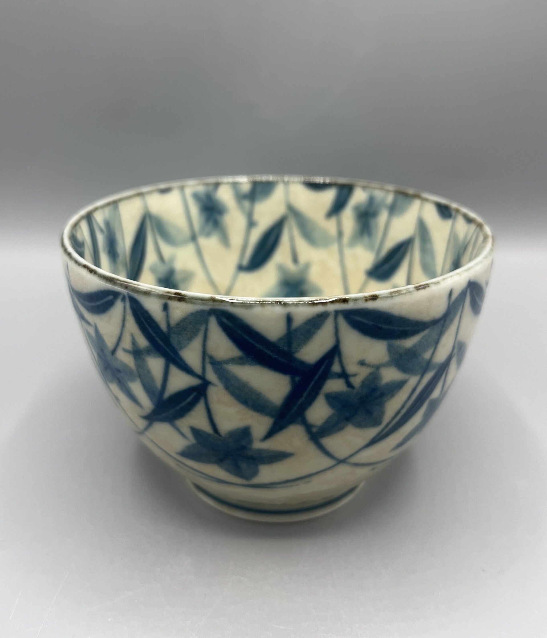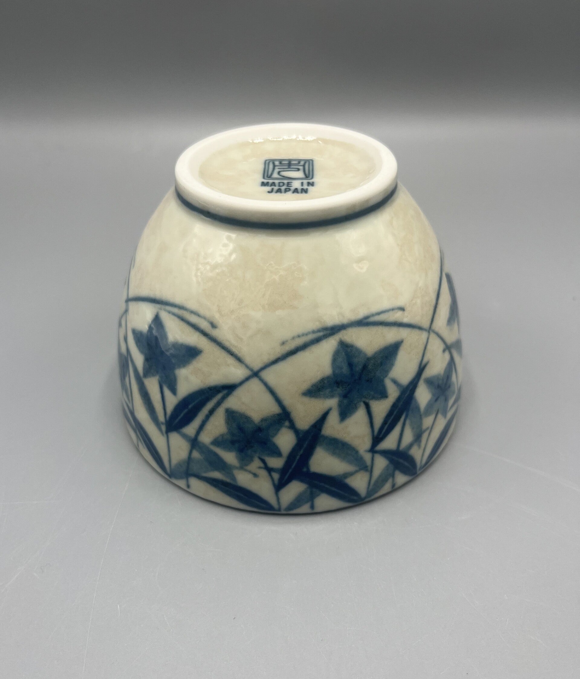 Witte kom met baluwe klokbloemmotief.