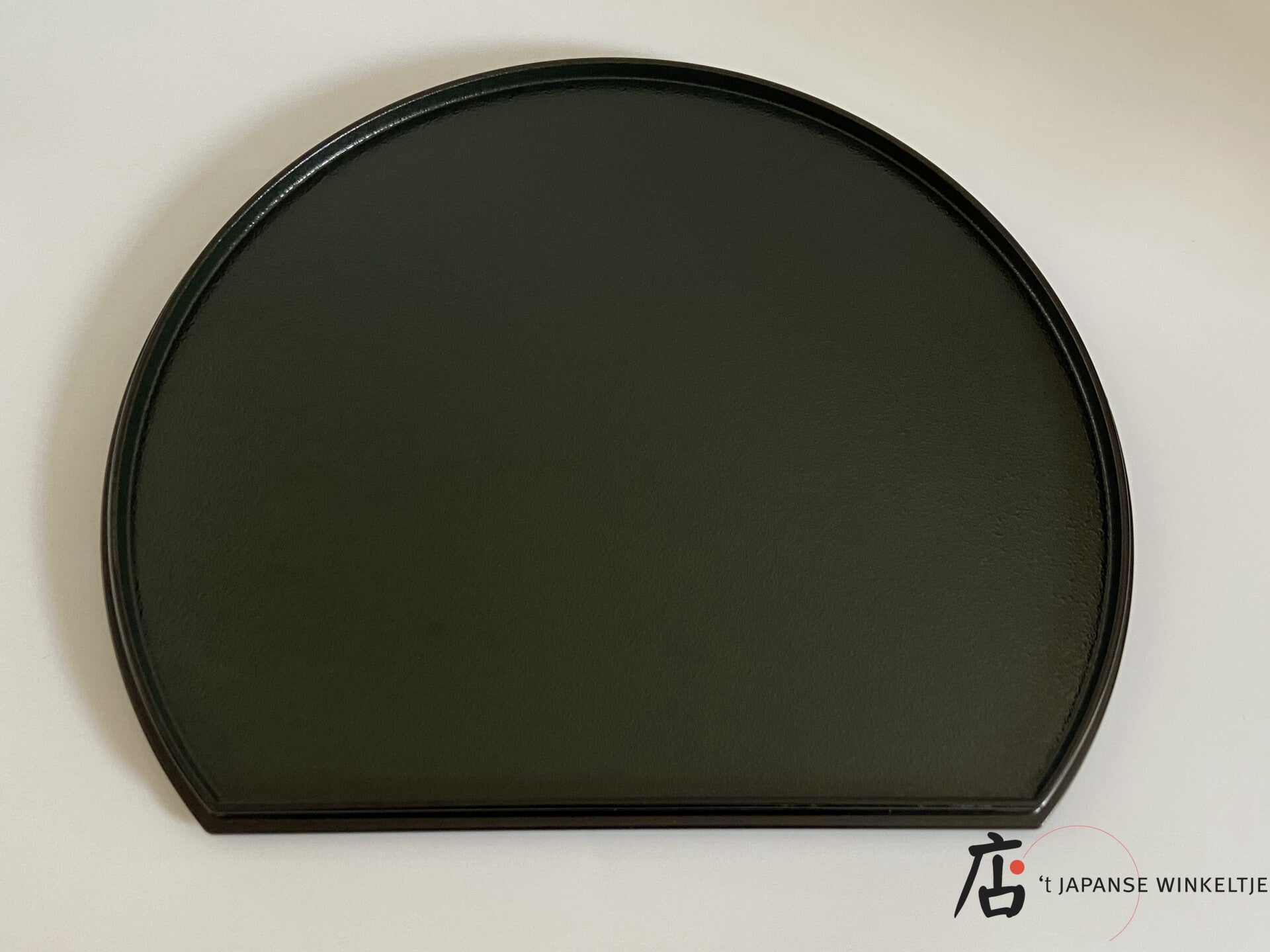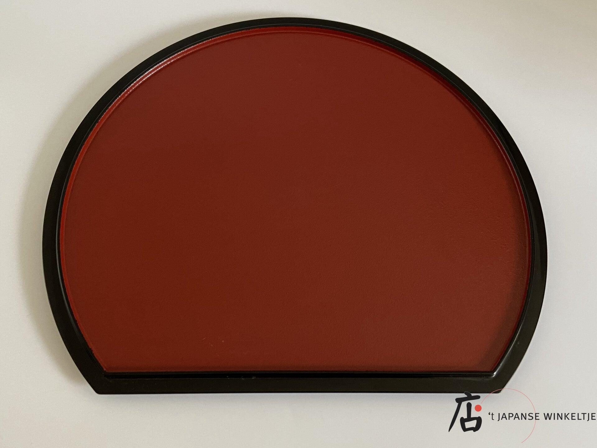 Halfrond dienblad met 1 kant zwart en 1 kant rood met zwarte rand.