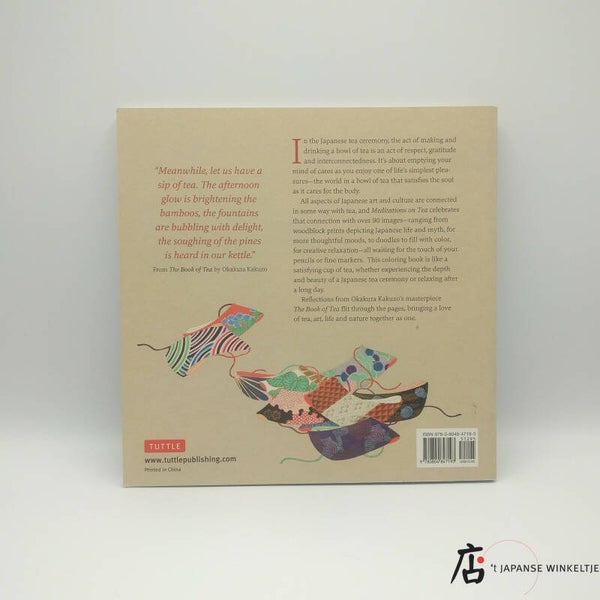 Bij meerdere kleurplaten zijn ook diverse spreuken in het Engels toegevoegd uit het meesterwerk van Okakura Kakuzo's 'The Book of Tea'.
