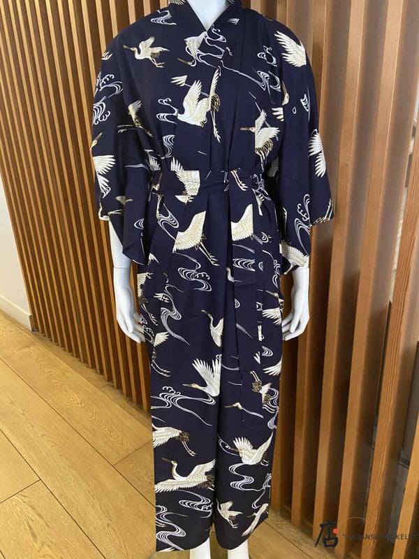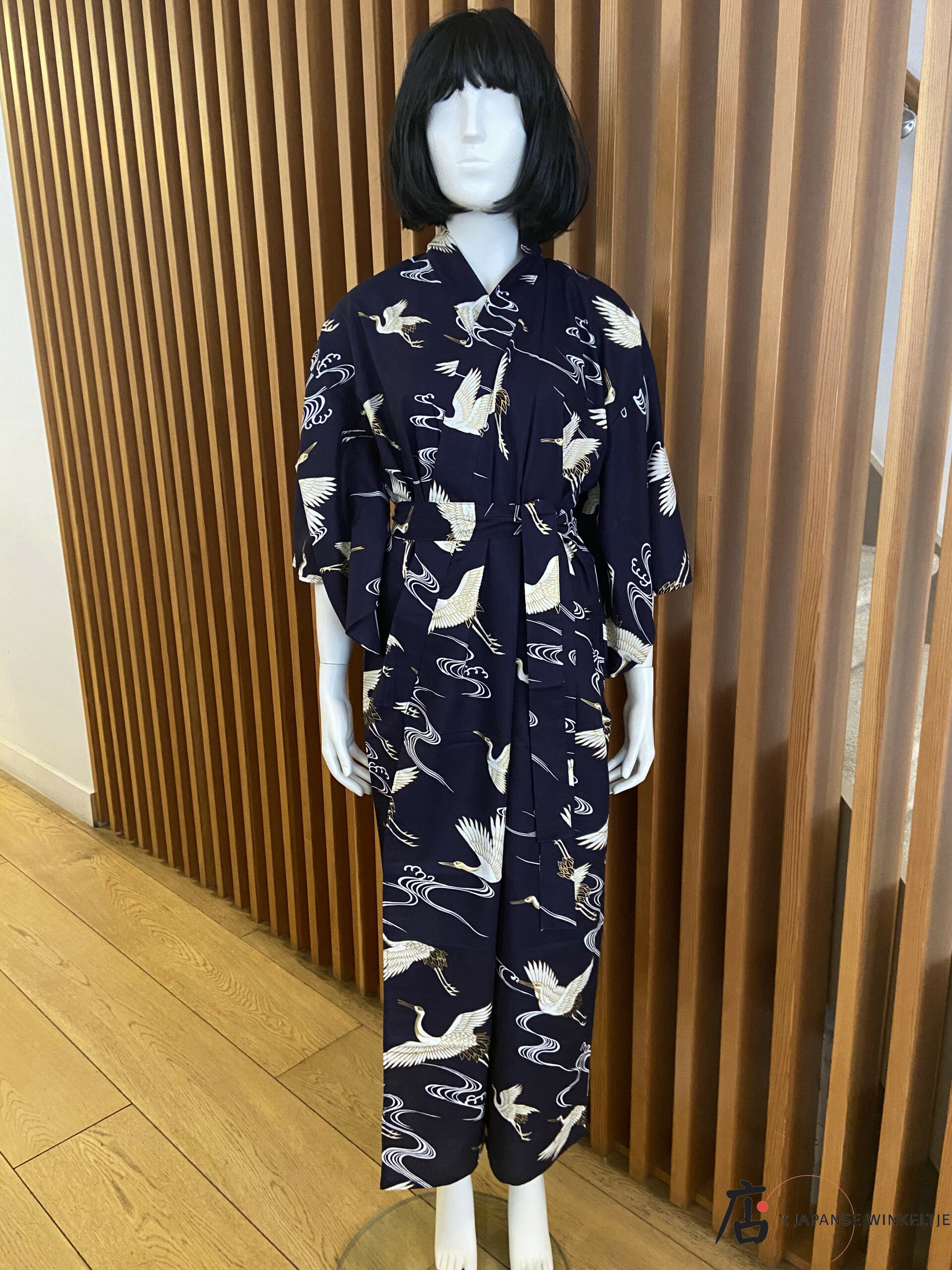 Yukata dames donkerblauw met kraanvogel goud/wit (T-Yuk-D)