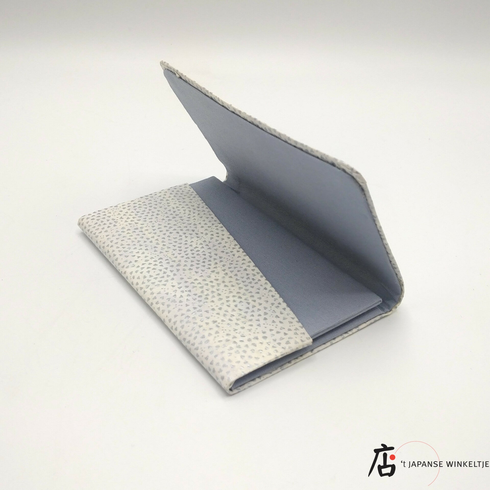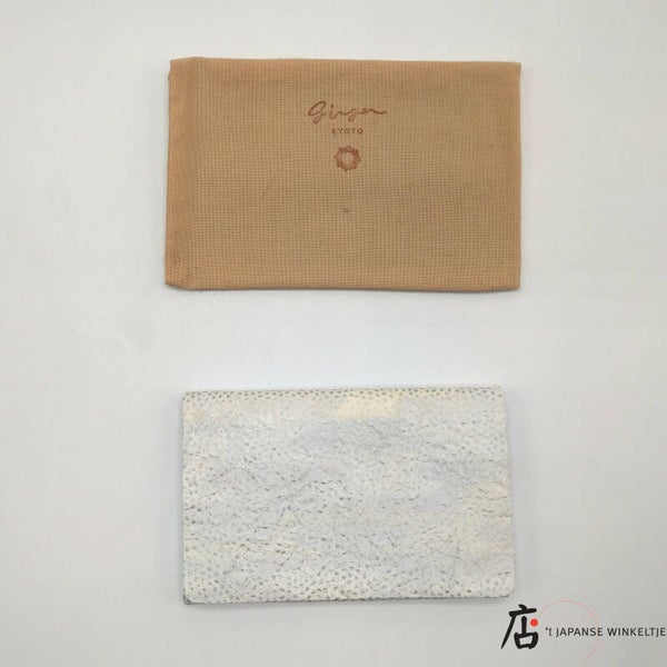 Kaarthouder, gemaakt van stevig en duurzaam washi papier uit Kyoto. Met bijbehorend stoffen zakje. Afmetingen: 7 x 5 cmProductcode: P-Kaartenhouder