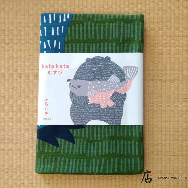 Furoshiki met afbeelding van beer met vis.