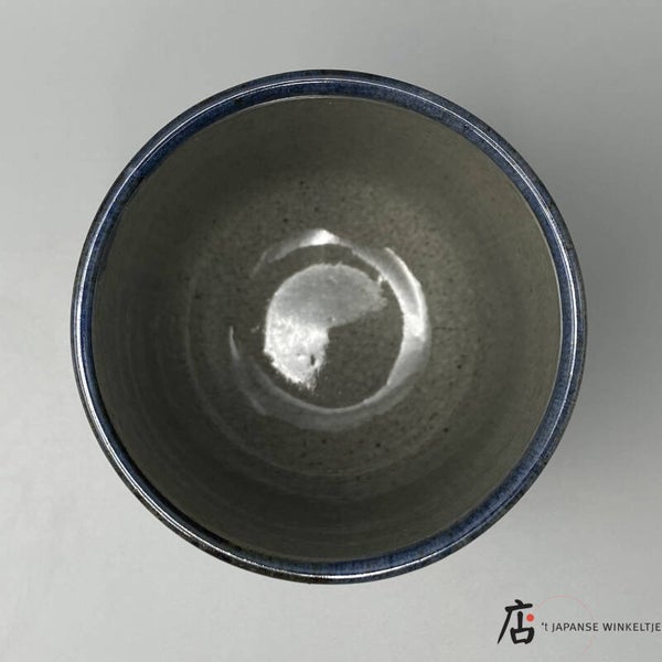 Yunomi (湯呑) theekop "Happy Cat" blauw Ø 7,5 cm 9,5 cm hoog (K-Sai-10260)