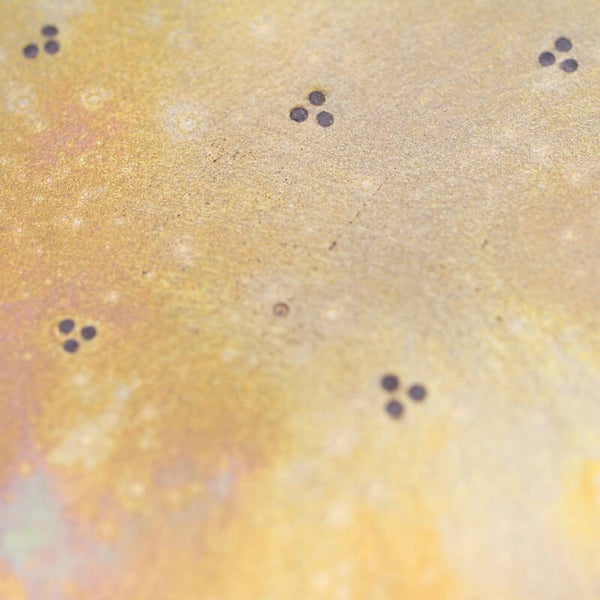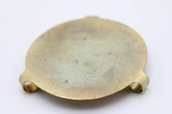 Handgemaakte messing theepot onderzetten ingelegd met zilver. Ook te gebruiken in een kom of schaal als teaboat. Het messing is met vuur gepatineerd waardoor iedere schep weer anders is. Het patroon is afgeleid van een antiek Katagami stencil, voorheen gebruikt voor het verven van kimono’s.
