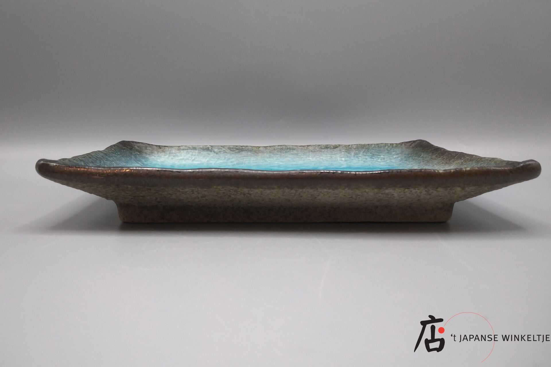 Oozara (大皿) schaal / bord rechthoekig turquoise 21,5 cm x 14 cm (K-Kigu11-118)