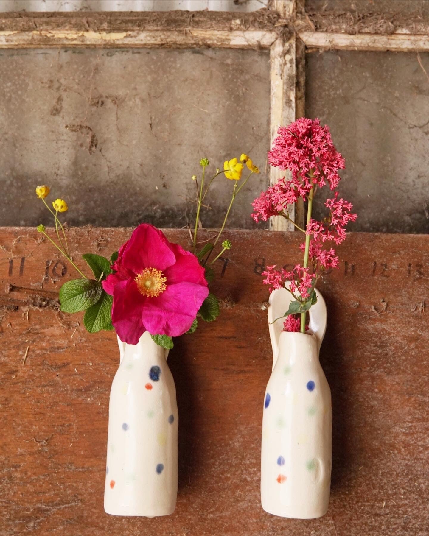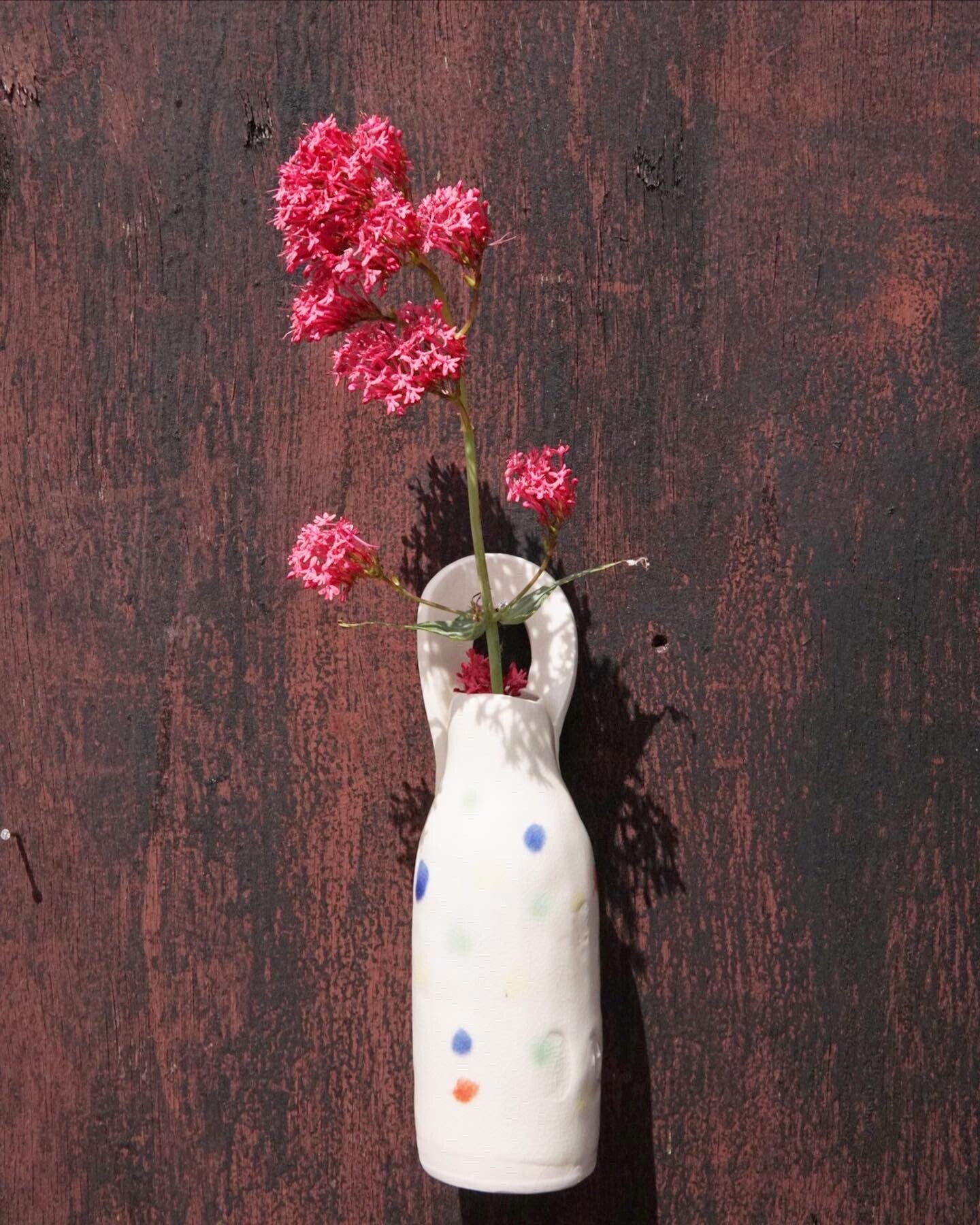Een leuke vaas om aan de muur te hangen, waar u 1 of enkele kleine bloemen in kunt doen.