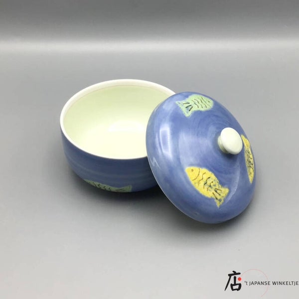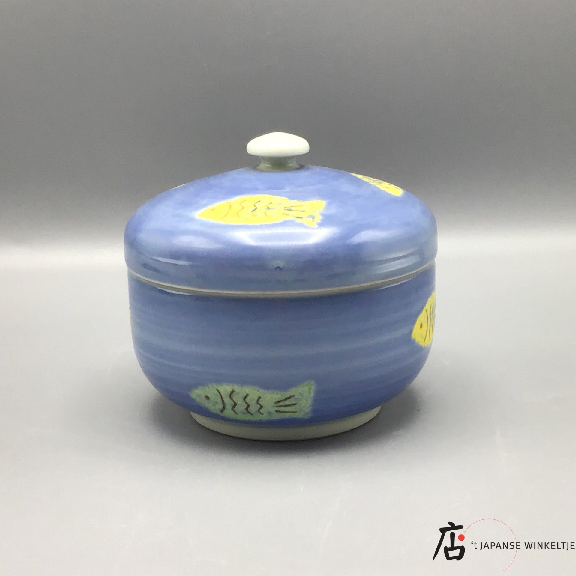 Pot met deksel, om bijvoorbeeld chocolaatjes of snoepjes in te bewaren.