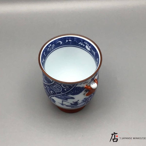 Yunomi / Theebeker met landschap motief en rood poppetje Ø 7 cm 8,5 cm hoog (K-Sai-23004)