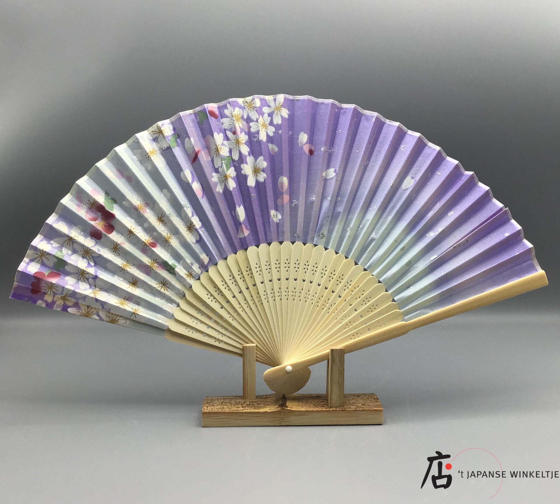Waaier paars met kersenbloem motief (D-Chi-3473)