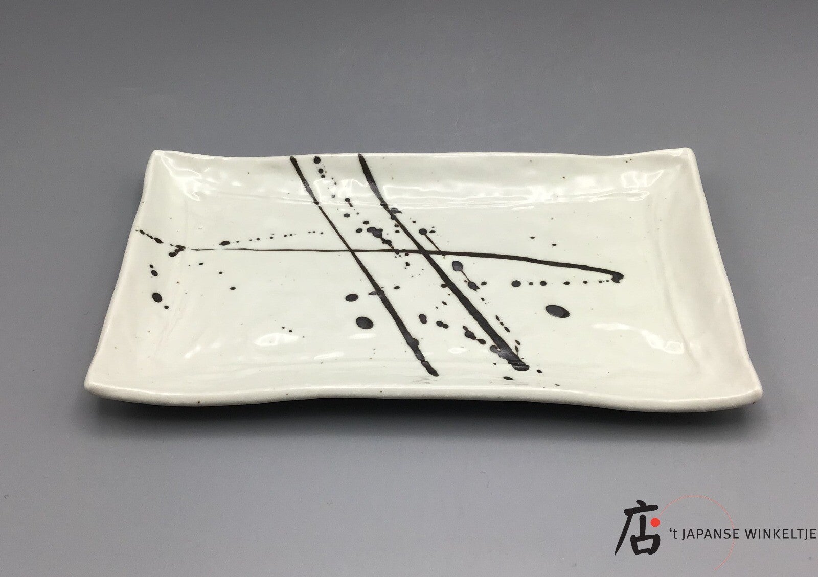 Sushischaal, wit met antraciet strepen van fijn aardewerk.