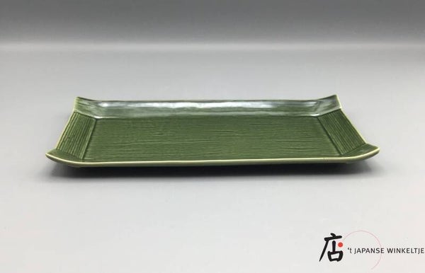 Schaal in Oribe groen van fijn aardewerk, ook in een kleinere variant beschikbaar.